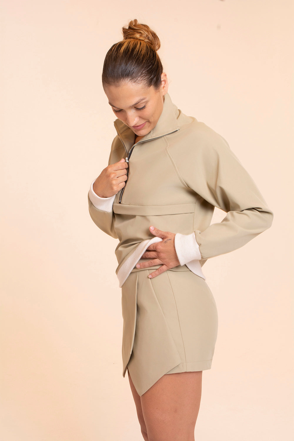 Meet the skort you can live in. The Par Skort is stretch-tailored in Japanese ECOPET®, our luxury recycled performance fabric with 4-way stretch, moisture-wicking, quick-dry, and water-resistant ease. A contoured waistband pulls you in comfortably, and precise seaming creates a subtle airbrushed effect through the hip. The front reads clean and refined, while the back is all function with built-in shorts that move and lift like your favorite denim. Finished with a visible back zip in luxury hardware and two sleek side pockets. Dress it up or down; it works on course, in the office, and out at night.